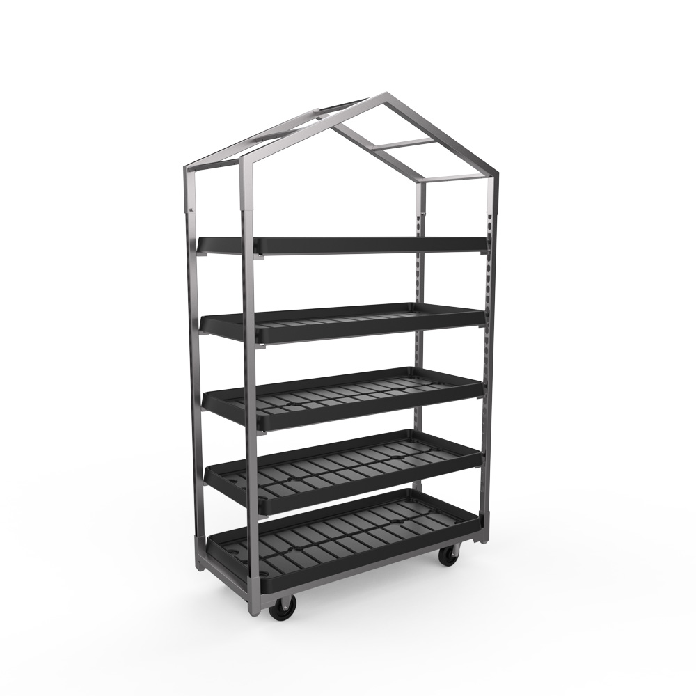 Die verzinkte Ausführung verleiht diesem Gewächshausdach ein industrielleres Aussehen als das Gewächshausdach Schwarz, das mehr Luxus ausstrahlt. Durch die Verwendung eines Dänischen Karren und von Bretter als Basis sind die Möglichkeiten für unterschiedliche Höhen endlos.