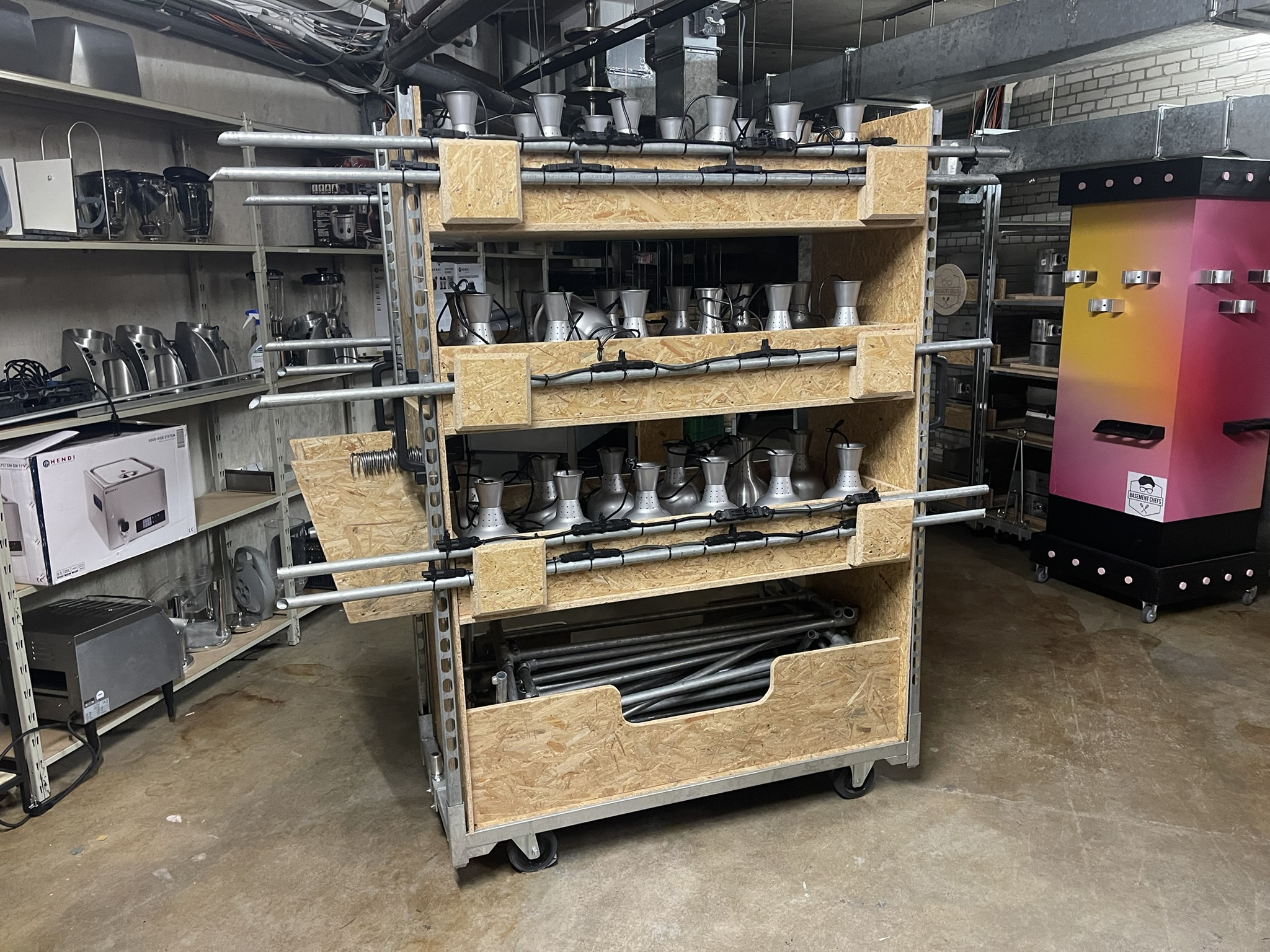 In der Kategorie "Was kann man mit einem Dänischen Karre machen?" können und dürfen wir die Basement Chefs nicht außer Acht lassen: Neben der Kreativität in der Küche verfügt dieses Team sicherlich auch über Kreativität in der Werkstatt. Nachdem sie einen hochwertigen Wagen mit den richtigen Rädern und Holmen gekauft haben, bauen sie die Karren genau so, wie sie wollen. Jeder Karren hat einen bestimmten Zweck und wird auch ausschließlich für diesen Zweck verwendet. Das kostet natürlich auch Zeit und Energie, steht aber in keinem Verhältnis zum Kauf einer Lösung von der Stange, die oft nur unzureichend ist.